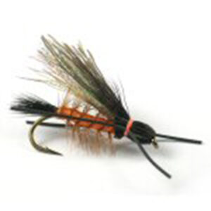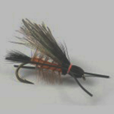 Todd Smith, a young production tier from Boise, Idaho, developed his Fluttering Salmon Fly for the South Fork of the Boise River. This huge dry fly mimics an egg-laying female caught on the water and working her wings to escape. That’s the reason for the splayed wing. Todd says the fly should be fished dead drift near banks, in the shade under tree limbs, and cut banks.
